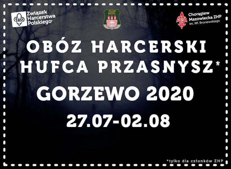 Hufiec ZHP Przasnysz zaprasza zuchów i harcerzy w wieku 8-17 lat do wzięcia udziału  w obozie harcerskim, który odbędzie się w terminie 27 lipca – 2 sierpnia w stanicy harcerskiej w Gorzewie. Koszt 600zł. Stanica…